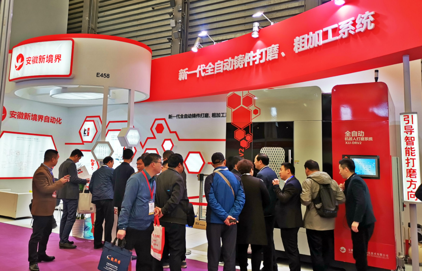2019.3.13-3.16安徽新境界在上海新國際博覽中心,E4-58展位。 Metal+Metallurgy China博覽會同期分為中國國際鑄造博覽會、中國國際壓鑄工業(yè)博覽會、中國國際冶金工業(yè)博覽會、中國國際工業(yè)爐展覽會和中國國際耐火材料及工業(yè)陶瓷展覽會,是一個極具專業(yè)性的國際盛會,安徽新境界將于2019年3月13-16日亮相于上海新國際博覽中心。 公司展出的DRV系列打磨機(jī)器人產(chǎn)品,獲得了鑄造界各級領(lǐng)導(dǎo)、朋友的一致好評,堪稱性價比很高的智能打磨機(jī)器人。